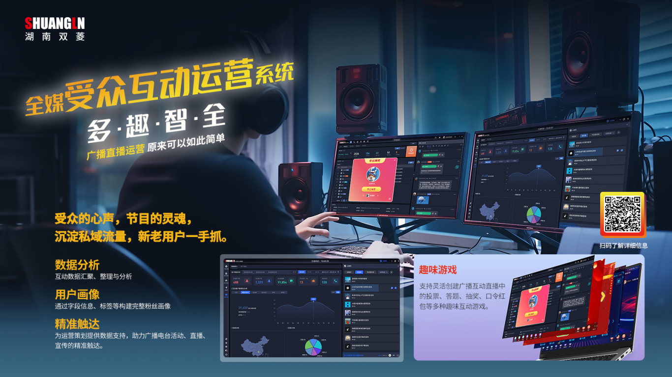 全媒受众互动运营系统,新媒体时代的制胜法宝,助力融媒体中心和广播电台直播互动获客以及沉浸式互动体验,依托受众画像与活动精准投放,让引流变现更高效,做到线上线下全覆盖,打通全渠道营销触点,提升广播电台传播和运营创收能力。
