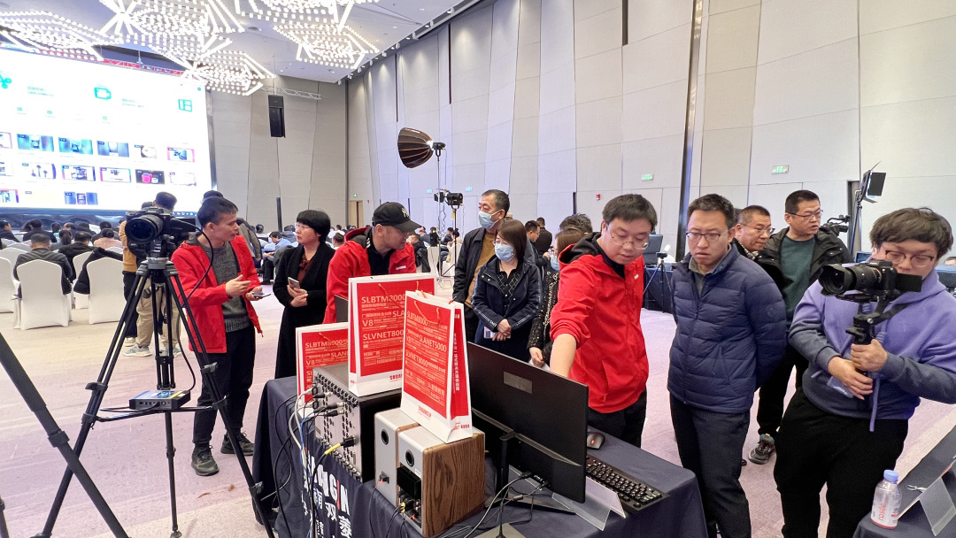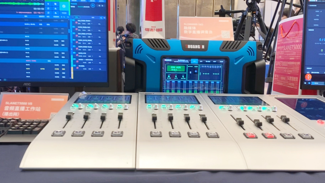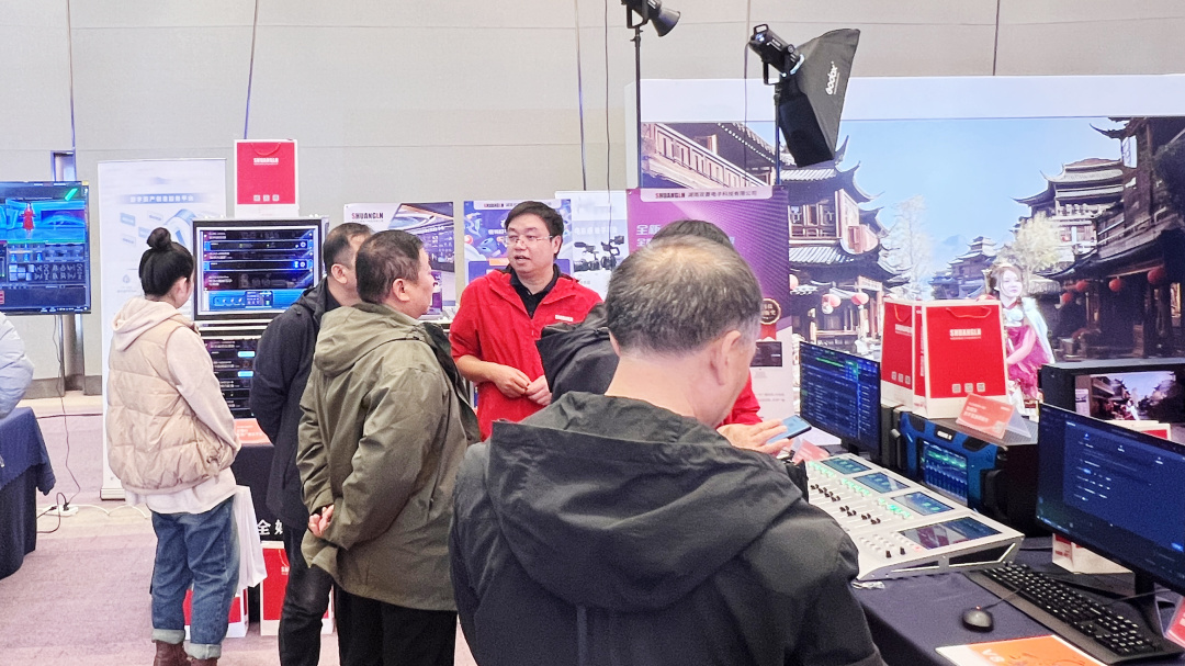 交流会现场,采用航空箱集约化设计搭建了“小而美”精致展区,全流程展示了广播aoip全系列硬件产品,通过数字化方式,在线展示了内容商店节目资源、广播电视新技术和新产品线上资源浏览专栏。方便现场领导们即时查阅,获取最新信息。下面,让我们一起了解湖南双菱在本次展会中的精彩瞬间吧!