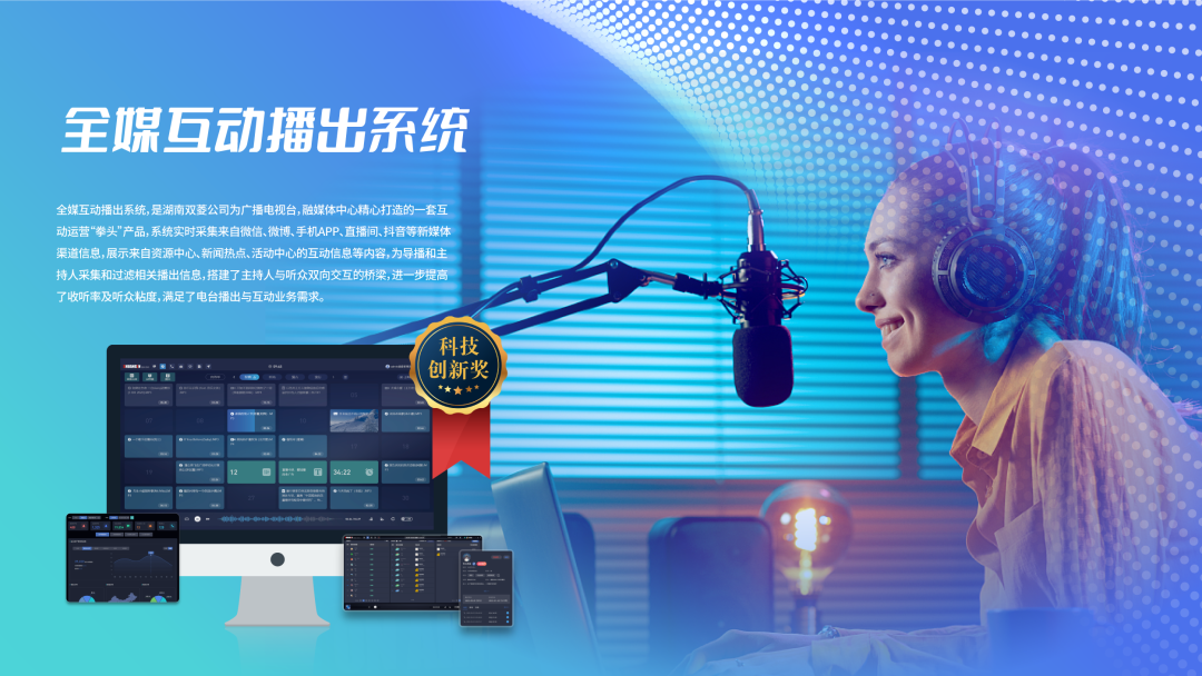 湖南双菱依托自主研发,深耕广电市场,拥有各类知识产权400余项,公司技术与产品涵盖广播、电视、融媒体和新时代文明实践方向,形成80多个系列,近400个品种的软硬件自研产品。本次会议,双菱重磅展出了全媒ai智慧广播系统、内容商店广播节目资源包、“菱云全媒”云平台等数十个软硬件和运营服务产品,深受山西省广大媒体客户朋友们青睐。