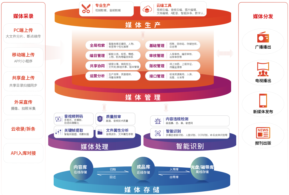 al智能媒体资产管理系统,运用人工智能相关技术,为媒体单位 提供海量的全媒体资产存储、智能处理、智能编目、智能检索、精细化管控与共享服务能力。 盘活数据资产,实现资源管理的高效化、智能化,为媒体单位创造更大的价值。