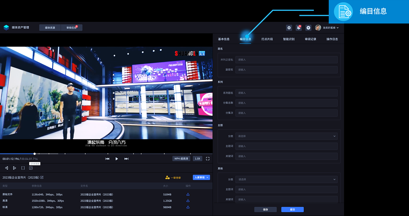 编目模板或用户自定义的编目模板,轻松完成媒体资产编目。