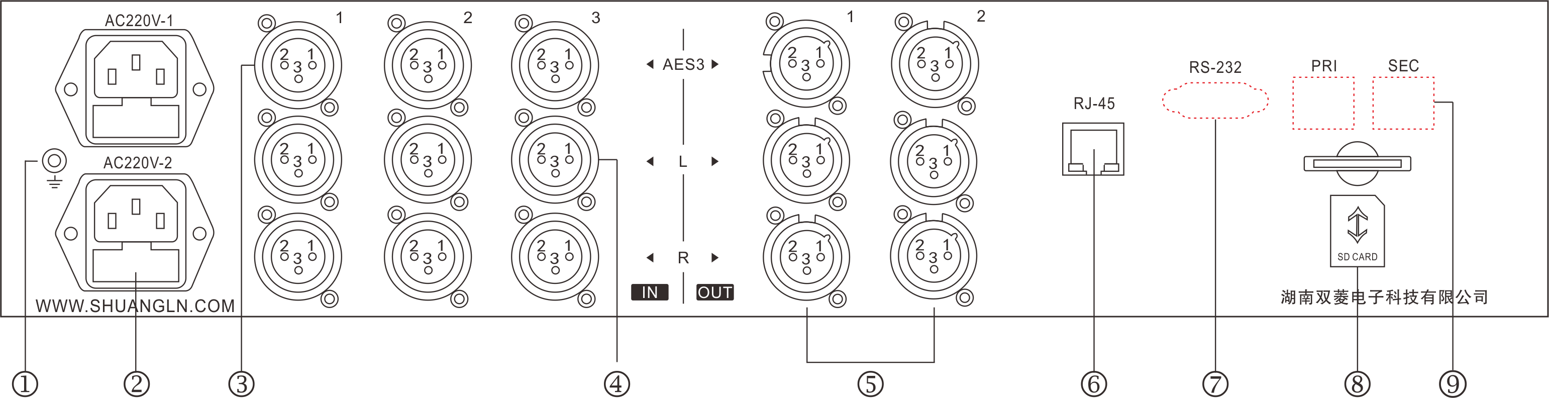⑨ aoip网络主备传输接口(仅用于slas-04bd/ip/m型号产品);