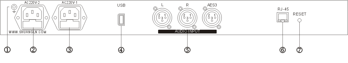 ⑤ 1路模拟l/r、数字aes3音频输入接口